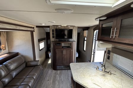 Renting this RV is the perfect choice for families and pet owners looking to embark on their next outdoor adventure in comfort and style. With the ability to sleep up to 8 people, it provides ample space for even the largest of groups, ensuring that everyone can spread out and relax after a long day of exploring. The RV comes fully equipped with all the essential amenities you could need, from high-quality linens and bedding to a complete set of cookware, dishes, and even a coffee maker - everything has been thoughtfully provided to make your camping trip as convenient and hassle-free as possible. And the inclusion of 4 comfortable outdoor chairs means you can sit back and soak up the scenic surroundings with your loved ones. But the convenience doesn't stop there; this RV rental also offers the option to add on e-bikes and regular bicycles, as well as coolers, allowing you to truly customize your experience and make the most of your time in nature. And to top it all off, the rental company even provides delivery and full set-up ( EXTRA FEE APPLIES), so all you have to worry about is packing your bags and embarking on your next unforgettable journey. With this kid and pet-approved RV, you're guaranteed a camping trip filled with adventure, allowing you to explore the great outdoors in unparalleled comfort.