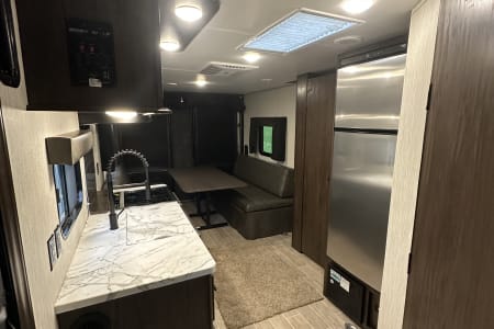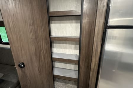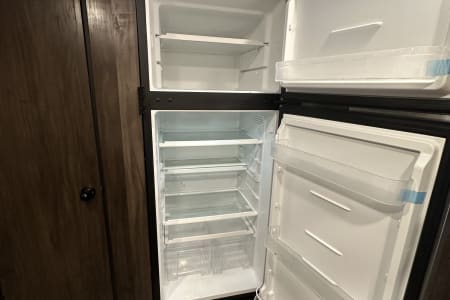 Cook your favorite meals with a 3-burner stove, oven, microwave, and fridge/freezer. We’ve stocked the cabinets with all the cookware and utensils you need for campsite feasts or morning coffee under the awning.