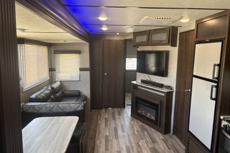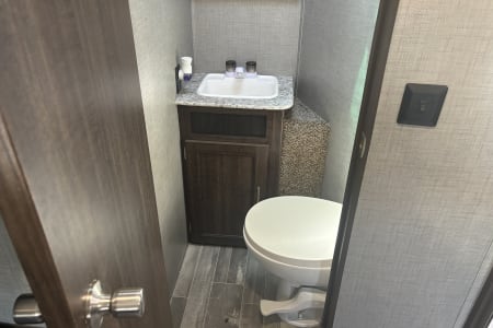 Renting this RV is the perfect choice for families and pet owners looking to embark on their next outdoor adventure in comfort and style. With the ability to sleep up to 9 people, it provides ample space for even the largest of groups, ensuring that everyone can spread out and relax after a long day of exploring. An added bonus is 2 bathrooms! One is Master bath with access from Master bedroom and hallway and the back bedroom has its own 1/2 bath. The RV comes fully equipped with all the essential amenities you could need, from high-quality linens and bedding to a complete set of cookware, dishes, and even a coffee maker - everything has been thoughtfully provided to make your camping trip as convenient and hassle-free as possible. And the inclusion of 4 comfortable outdoor chairs means you can sit back and soak up the scenic surroundings with your loved ones. But the convenience doesn't stop there; this RV rental also offers the option to add on e-bikes and regular bicycles, as well as coolers, allowing you to truly customize your experience and make the most of your time in nature. And to top it all off, the rental company even provides delivery and full set-up, so all you have to worry about is packing your bags and embarking on your next unforgettable journey. With this kid and pet-approved RV, you're guaranteed a camping trip filled with adventure, allowing you to explore the great outdoors in unparalleled comfort.