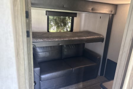 Bunk Room: two bunks with increased floor space. Loft: queen mattress above bunk room