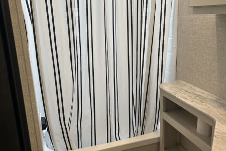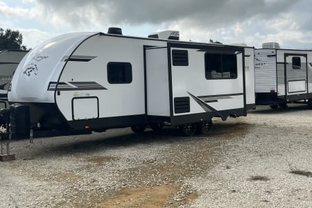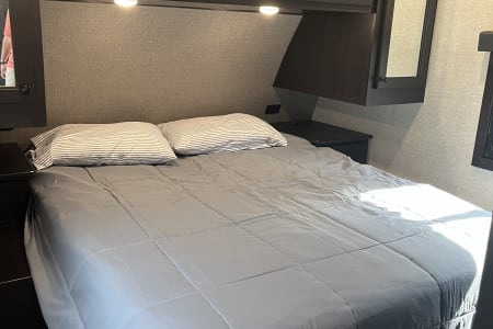 Outside, the Range Lite 241BH makes setup and downtime effortless. Enjoy an electric awning with LED lighting, outdoor speakers, and pass-through storage for all your gear. Lightweight yet durable, it tows easily with a variety of vehicles, giving you the freedom to explore without limits.