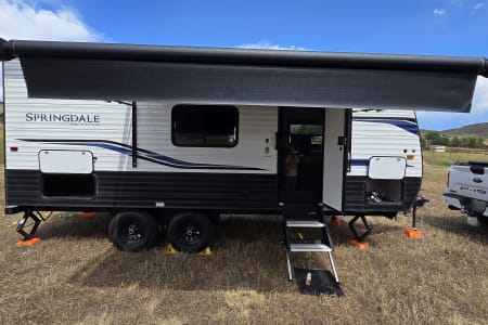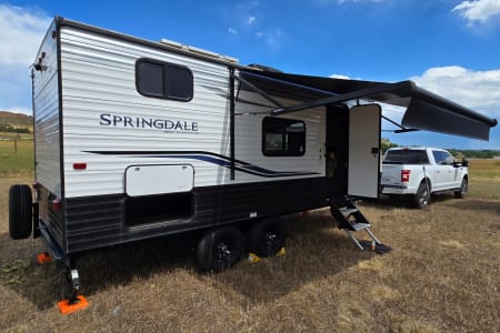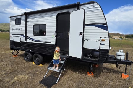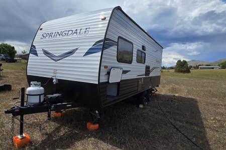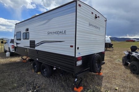 Near Brand new and well maintained light weight camper. Perfect for In-laws and smaller families looking to go on trips that make memories to last a lifetime! Weighing in at under 4600lbs including water and propane make this camper towable with any half ton truck with out the use of cumbersome equalizer hitches (one is available with a small set up fee). Camper has 200watts of solar and a lithium battery ready to be used off grid at some of Colorado's best open spaces. Pet friendly. December through March 31st the camper will be winterized. No water or waste water will be available for use, but still provides a nice warm area to sleep and hangout. If the camper is traveling to a warmer climate with no freeze risk the camper can be de winterized for a small charge on the discounted rate. The prices will also be reduced during that time.