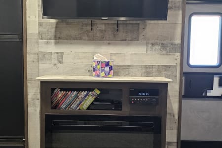 * Indoor entertainment center: Bluetooth stereo, 32” TV, and fireplace