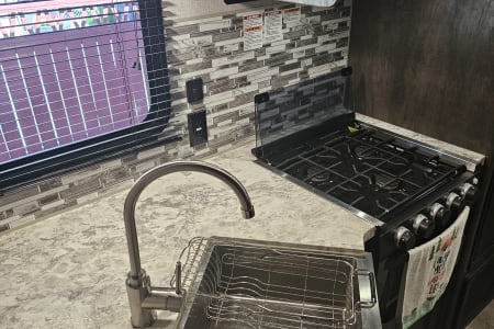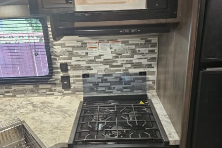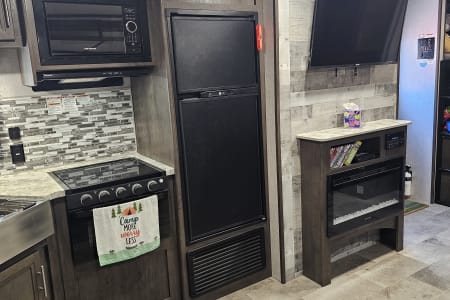 * 3-burner stove, oven, microwave, and large fridge/freezer combo