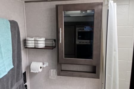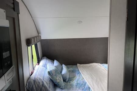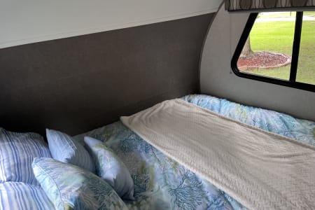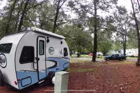 Carolina Dream is your beach, mountain, or lake getaway for your family or small group. This Carolina Blue retro looking RV will bring back childhood memories of crackling fire and charred marshmallows.
