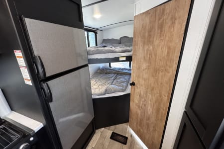 This Compact RV has 24ft of usable living space & can accommodate up to 8 adults/larger kids comfortably.