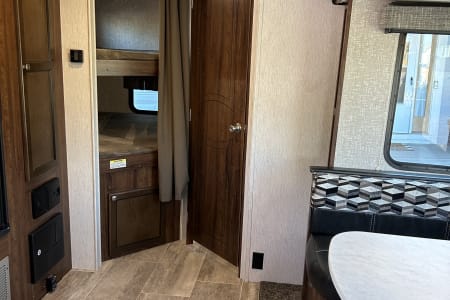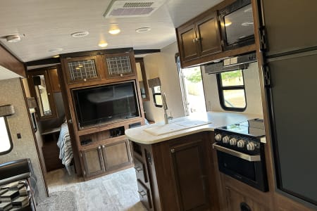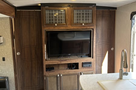 This comfortable and well-equipped travel trailer is perfect for your next adventure! With room to sleep up to 8 guests, it features cozy bunk beds ideal for kids or extra travelers. Fresh linens are included for all beds, so you can pack light and relax. Inside, enjoy a mounted TV for movie nights or downtime, making this trailer a true home away from home. This trailer has everything you need for a convenient and enjoyable stay.