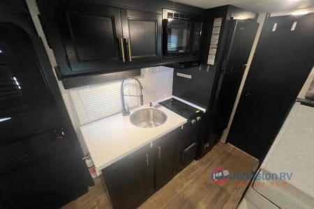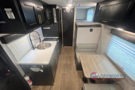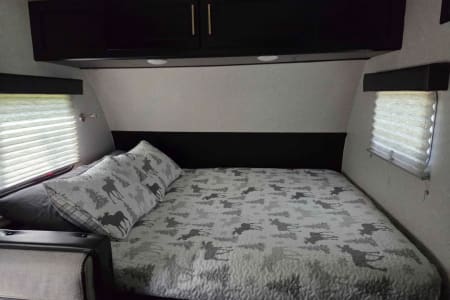 Pick up this well maintained camper and travel to where ever desired and return when you are done. On the outside camper includes an outdoor refrigerator, awning, outdoor shower and has an automatic front jack making it easy for hooking up and unhooking. Inside has a kitchen, queen size main bed, twin size bunk beds, dinette which turns into sleeper, and full bathroom. Plenty of storage as well in the camper.