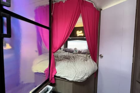• Queen bed in private rear sleeping area
