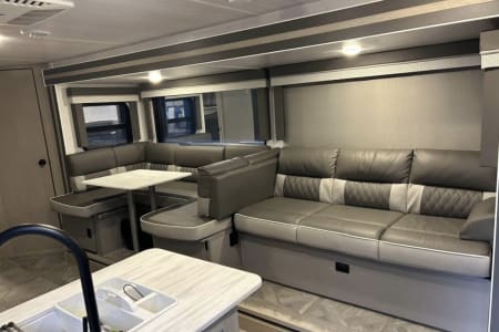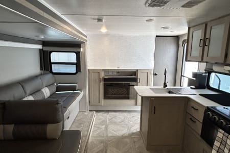 Rent our 2023 FRRV Wildwood X-Lite Platinum for the perfect blend of modern convenience and rugged adventure. With a spacious layout that sleeps up to 10, this travel trailer is ideal for family trips, weekend getaways, or extended vacations. It features a fully equipped kitchen, cozy bunks, a queen bed, and a sleek interior with plenty of storage. Easy to tow and loaded with amenities, it's your hassle-free home away from home—wherever the road takes you.