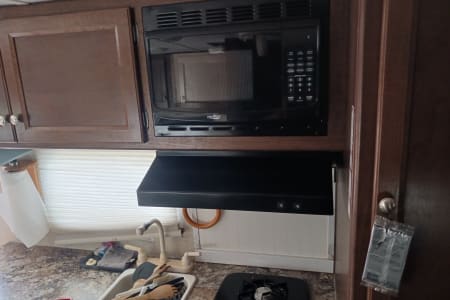 This modern camper is adventure-ready and perfect for families or groups looking to hit the road in comfort. It sleeps up to five people with a cozy queen-sized bed, and a dinette that easily converts into a full-size bed. The fully equipped kitchen (without an oven) includes a gas stovetop, microwave, mini fridge, and plenty of storage, making meal prep simple and convenient wherever you go. Inside you'll also find a private bathroom with a shower and toilet giving you the comfort of home while on the move. With its bright, spacious layout and smart design, this camper is easy to tow yet roomy enough to create unforgettable memories. please note that smoking is not permitted and drained before return. we ask that water tanks be cleaned and drained before return. whether it's a weekend getaway or a longer adventure, this camper is the perfect base for your next journey.