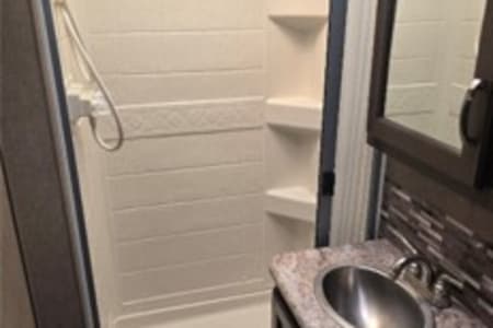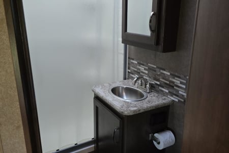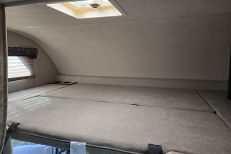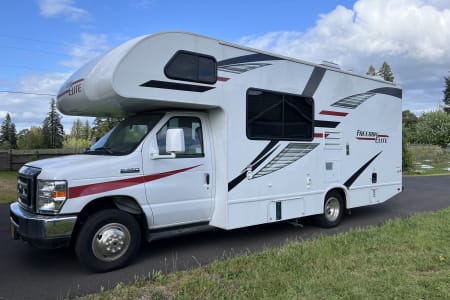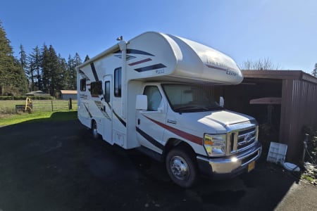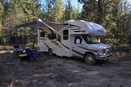 Prepping is also completed (with no extra fees) including a safety check: fire alarm, tires, wiper blades, lights, blinkers, brakes, appliances all inspected, batteries are fully charged, propane full, a full tank of gas and potable water. A potable water hose is provided in case you need to refill the potable water, along with a sanitary drain line, 30-amp power cable and coax for the TV in case you are at a campsite with hookups. Bunny is also equipped with solar panels in case you are going remote without hookups. She can last well over a week without adding fuel or charging (just watch your water use, potable water tank holds 40 gallons). She has some pep too!! she is equipped with a 6.8L Triton V10 on a Ford E350 chassis, 305 HP & 420 ft-lbs. of torque.