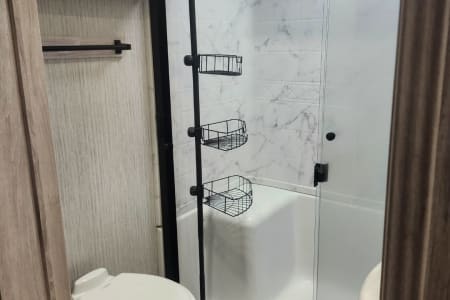 Step into comfort and space with this 43-foot fifth wheel — your luxury home on wheels! This rig is ideal for families, couples, or groups looking for an unforgettable getaway. With two private bedrooms and two full bathrooms, everyone gets their own space while still enjoying the adventure together.