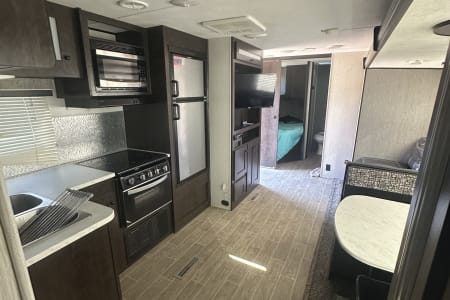 Enjoy the outdoors without sacrificing comfort! Our Trail Runner travel trailer is fully equipped with everything you need for a relaxing getaway — including a full bathroom, a half bathroom, and an outdoor kitchen and shower for easy cleanup after a day of exploring.