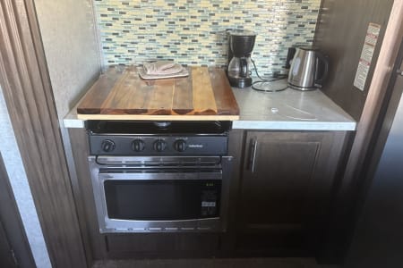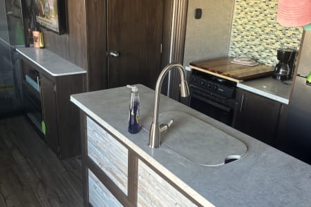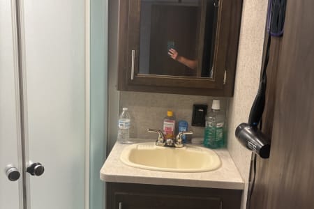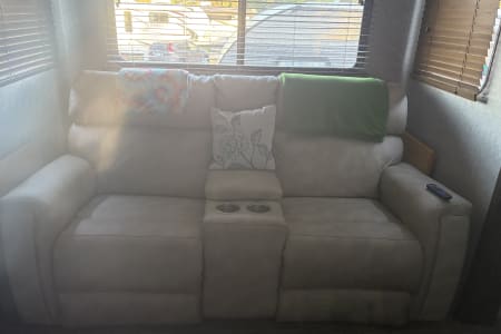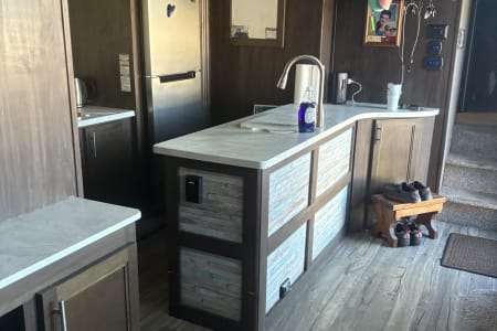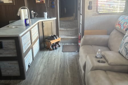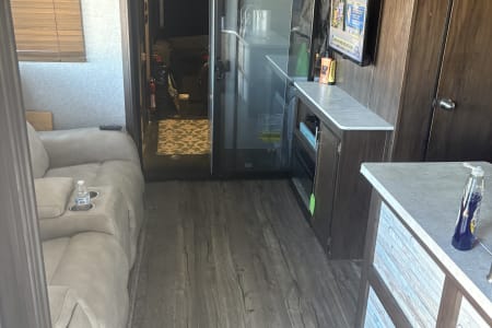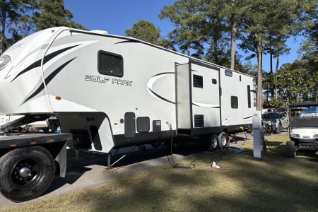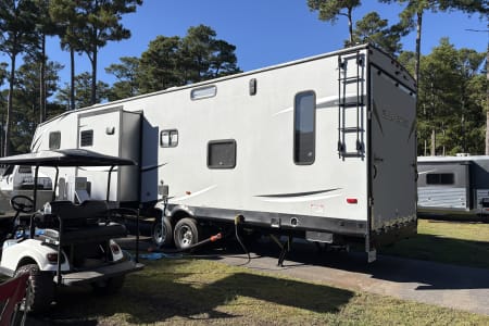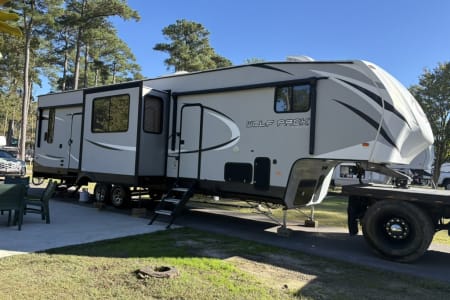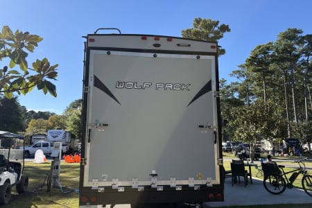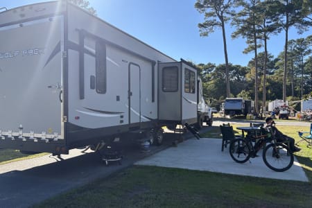 Spacious 40' RV Toy Hauler for Rent! Sleeps 6, features AC, heat, & WiFi for all your adventures! Has plenty of sleeping room and a large bathroom, for an RV. This hauler is for delivery only to local Ocean City, MD. campgrounds. Reserve your stay at Frontier Town, Castaways, Assateague Island, or Island Resort Campground & we will have it set up and ready for you. If you need assistance and a class on how to use it, make sure you let us know when you are going to arrive so we can coordinate it with you. This comes with a coded lock for your stay along with clean linens and towels. Please bring any beach towels needed. We also have bikes for adults and kids to rent if needed. Fee does not include the campground price as they are subject to change. You can contact campground directly to reserve your spot but please tell them that it is 40 ft long with 2 slide outs, one on each side, 50 amp.