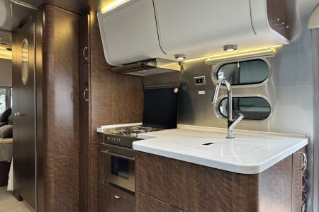• 25ft Airstream Globetrotter – premium aluminum body with panoramic windows